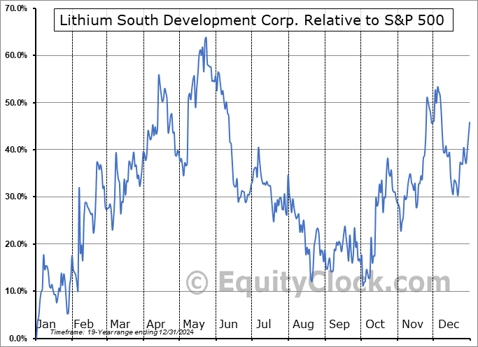 Analysis of the Lithium South Development Corp. (OTCMKT:LISMF) seasonal charts above shows that a Buy Date of December 30 and a Sell Date of April 6 has resulted in a geometric average return of 27.55% above the benchmark rate of the S&P 500 Total Return Index over the past 19 years. This seasonal timeframe has shown positive results compared to the benchmark in 15 of those periods. This is a good rate of success and the return strongly outperforms the relative buy-and-hold performance of the stock over the past 19 years by an average of 45.08% per year.