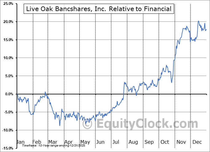 The seasonal timeframe correlates Poorly with the period of seasonal strength for the Financial sector, which runs from November 22 to April 13. The seasonal chart for the broad sector is available via the following link: Financial Sector Seasonal Chart.