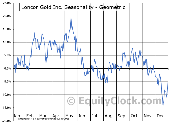 Analysis of the Loncor Gold Inc. (TSE:LN.TO) seasonal charts above shows that a Buy Date of December 19 and a Sell Date of March 10 has resulted in a geometric average return of 20.9% above the benchmark rate of the S&P 500 Total Return Index over the past 16 years. This seasonal timeframe has shown positive results compared to the benchmark in 12 of those periods. This is a good rate of success and the return strongly outperforms the relative buy-and-hold performance of the stock over the past 16 years by an average of 37.22% per year.