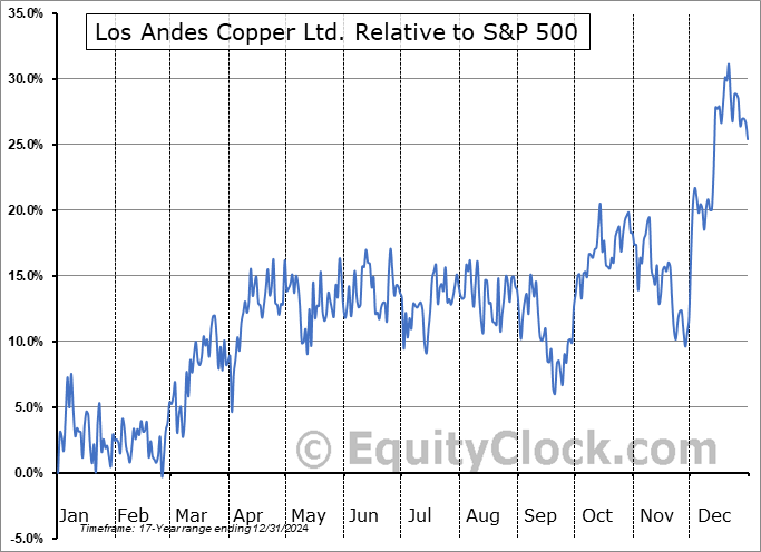 Analysis of the Los Andes Copper Ltd. (TSXV:LA.V) seasonal charts above shows that a Buy Date of February 7 and a Sell Date of May 6 has resulted in a geometric average return of 11.54% above the benchmark rate of the S&P 500 Total Return Index over the past 17 years. This seasonal timeframe has shown positive results compared to the benchmark in 13 of those periods. This is a good rate of success and the return strongly outperforms the relative buy-and-hold performance of the stock over the past 17 years by an average of 18.62% per year.