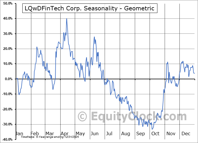 A word of caution: Only 5 years of data is available for shares of LQWD.V, perhaps insufficient to create a seasonal profile that accurately gauges the seasonal tendencies influencing the investment. Ideally, while 20 years is preferred, at least 10 years of data is required to perform a seasonal analysis that is considered to be reliable for future seasonal periods.