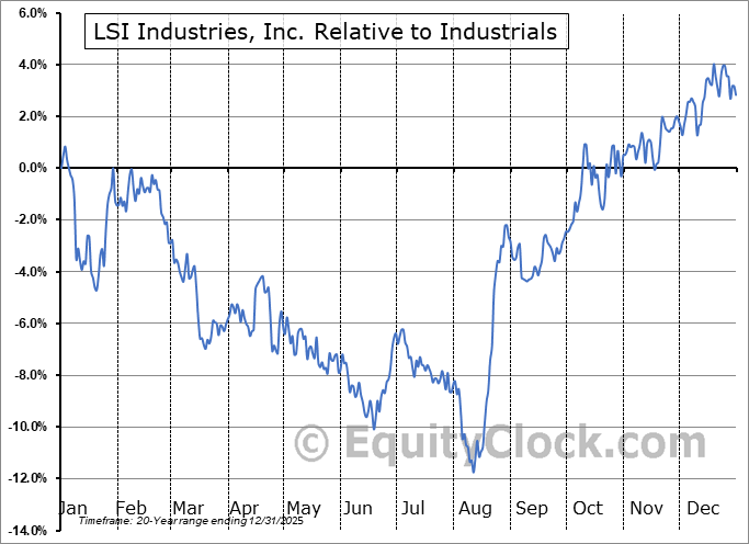 Analysis of the LSI Industries, Inc. (NASD:LYTS) seasonal charts above shows that a Buy Date of August 9 and a Sell Date of November 2 has resulted in a geometric average return of 11.6% above the benchmark rate of the S&P 500 Total Return Index over the past 20 years. This seasonal timeframe has shown positive results compared to the benchmark in 18 of those periods. This is an excellent rate of success and the return strongly outperforms the relative buy-and-hold performance of the stock over the past 20 years by an average of 15.73% per year.