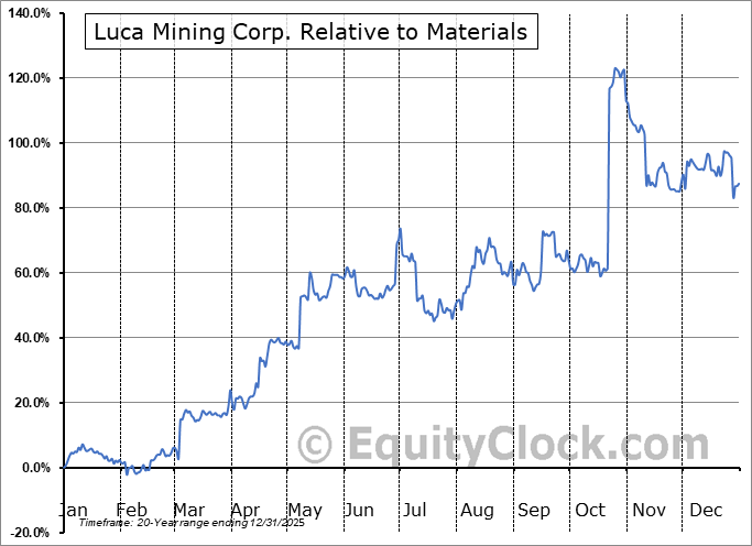 Analysis of the Luca Mining Corp. (OTCMKT:LUCMF) seasonal charts above shows that a Buy Date of December 21 and a Sell Date of April 18 has resulted in a geometric average return of 18.42% above the benchmark rate of the S&P 500 Total Return Index over the past 20 years. This seasonal timeframe has shown positive results compared to the benchmark in 16 of those periods. This is a very good rate of success and the return strongly outperforms the relative buy-and-hold performance of the stock over the past 20 years by an average of 24.7% per year.