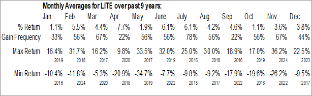 Lumentum Holdings Inc. (NASD:LITE) Seasonal Chart