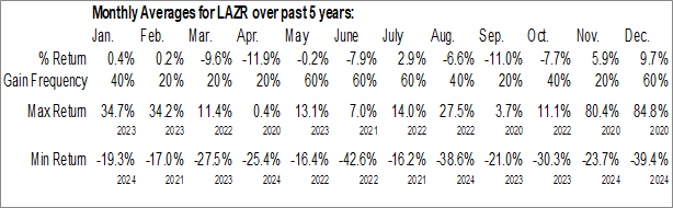 To download LAZR seasonal chart data, please log in or Subscribe.