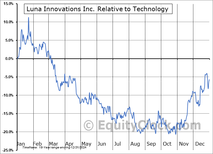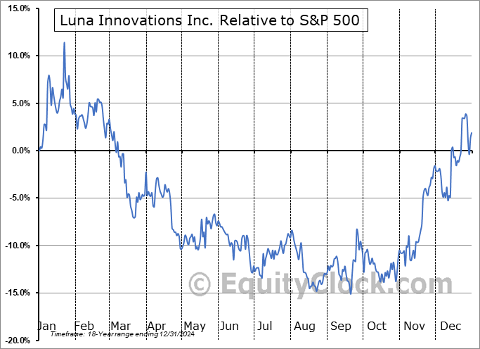 Analysis of the Luna Innovations Inc. (NASD:LUNA) seasonal charts above shows that a Buy Date of September 12 and a Sell Date of January 22 has resulted in a geometric average return of 20.99% above the benchmark rate of the S&P 500 Total Return Index over the past 18 years. This seasonal timeframe has shown positive results compared to the benchmark in 14 of those periods. This is a good rate of success and the return strongly outperforms the relative buy-and-hold performance of the stock over the past 18 years by an average of 32.82% per year.