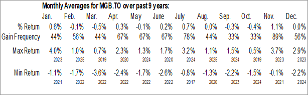 To download MGB.TO seasonal chart data, please log in or Subscribe.