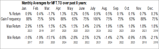 To download MFT.TO seasonal chart data, please log in or Subscribe.