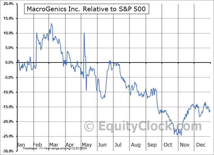 Analysis of the MacroGenics Inc. (NASD:MGNX) seasonal charts above shows that a Buy Date of October 24 and a Sell Date of February 27 has resulted in a geometric average return of 11.04% above the benchmark rate of the S&P 500 Total Return Index over the past 11 years. This seasonal timeframe has shown positive results compared to the benchmark in 8 of those periods. This is a good rate of success and the return strongly outperforms the relative buy-and-hold performance of the stock over the past 11 years by an average of 38.72% per year.
