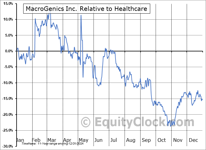 The seasonal timeframe correlates Poorly with the period of seasonal strength for the Healthcare sector, which runs from April 25 to December 4. The seasonal chart for the broad sector is available via the following link: Healthcare Sector Seasonal Chart.