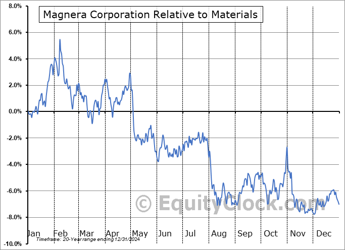 Analysis of the Magnera Corporation (NYSE:MAGN) seasonal charts above shows that a Buy Date of October 12 and a Sell Date of February 9 has resulted in a geometric average return of 3.75% above the benchmark rate of the S&P 500 Total Return Index over the past 20 years. This seasonal timeframe has shown positive results compared to the benchmark in 16 of those periods. This is a very good rate of success and the return strongly outperforms the relative buy-and-hold performance of the stock over the past 20 years by an average of 20.87% per year.