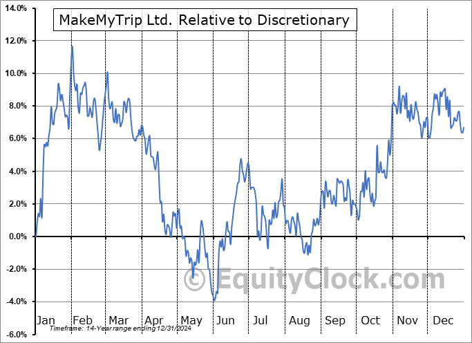 The seasonal timeframe correlates Poorly with the period of seasonal strength for the Consumer Discretionary sector, which runs from October 17 to April 12. The seasonal chart for the broad sector is available via the following link: Consumer Discretionary Sector Seasonal Chart.
