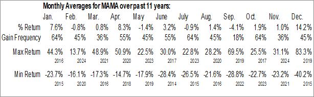 MamaMancini’s Holdings, Inc. (NASD:MAMA) Seasonal Chart