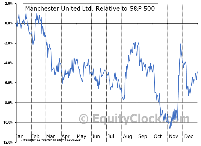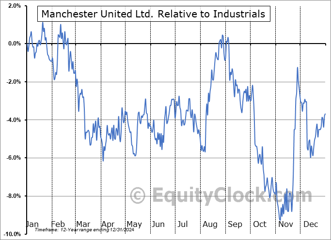 Analysis of the Manchester United Ltd. (NYSE:MANU) seasonal charts above shows that a Buy Date of July 8 and a Sell Date of September 27 has resulted in a geometric average return of 2.91% above the benchmark rate of the S&P 500 Total Return Index over the past 12 years. This seasonal timeframe has shown positive results compared to the benchmark in 8 of those periods. This is a good rate of success and the return strongly outperforms the relative buy-and-hold performance of the stock over the past 12 years by an average of 13.52% per year.