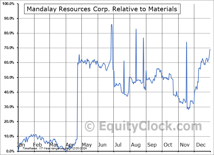 Analysis of the Mandalay Resources Corp. (OTCMKT:MNDJF) seasonal charts above shows that a Buy Date of March 29 and a Sell Date of June 26 has resulted in a geometric average return of 33.17% above the benchmark rate of the S&P 500 Total Return Index over the past 17 years. This seasonal timeframe has shown positive results compared to the benchmark in 13 of those periods. This is a good rate of success and the return strongly outperforms the relative buy-and-hold performance of the stock over the past 17 years by an average of 47.22% per year.