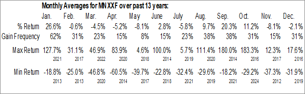 Manganese X Energy Corp. (OTCMKT:MNXXF) Seasonal Chart