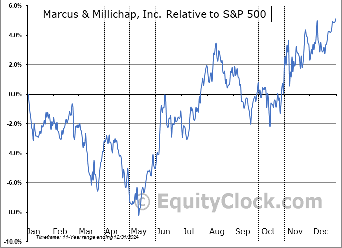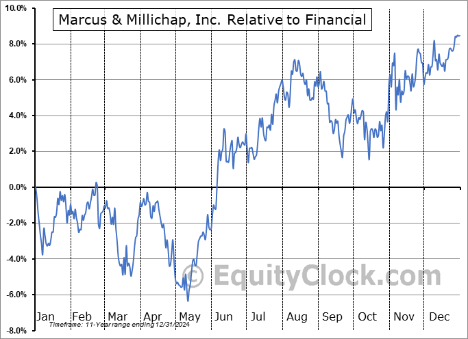 Analysis of the Marcus & Millichap, Inc. (NYSE:MMI) seasonal charts above shows that a Buy Date of May 17 and a Sell Date of August 7 has resulted in a geometric average return of 5.3% above the benchmark rate of the S&P 500 Total Return Index over the past 11 years. This seasonal timeframe has shown positive results compared to the benchmark in 9 of those periods. This is a very good rate of success and the return strongly outperforms the relative buy-and-hold performance of the stock over the past 11 years by an average of 8.28% per year.