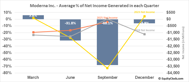 A word of caution: Only 6 years of data is available for shares of MRNA, perhaps insufficient to create a seasonal profile that accurately gauges the seasonal tendencies influencing the investment. Ideally, while 20 years is preferred, at least 10 years of data is required to perform a seasonal analysis that is considered to be reliable for future seasonal periods.