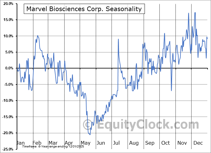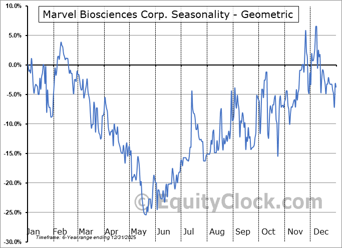 A word of caution: Only 6 years of data is available for shares of MRVL.V, perhaps insufficient to create a seasonal profile that accurately gauges the seasonal tendencies influencing the investment. Ideally, while 20 years is preferred, at least 10 years of data is required to perform a seasonal analysis that is considered to be reliable for future seasonal periods.