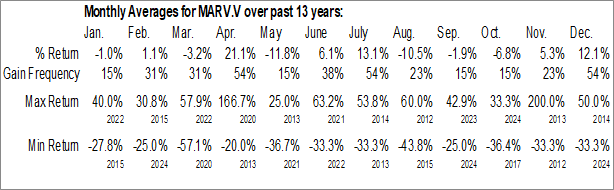 To download MARV.V seasonal chart data, please log in or Subscribe.