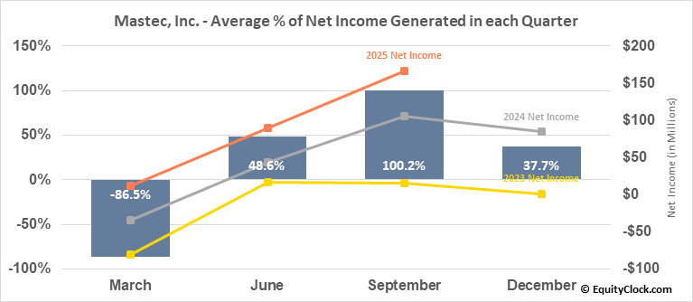 Mastec, Inc. (NYSE:MTZ) Seasonal Chart