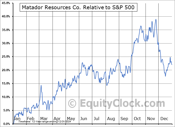 Analysis of the Matador Resources Co. (NYSE:MTDR) seasonal charts above shows that a Buy Date of March 18 and a Sell Date of August 13 has resulted in a geometric average return of 22.37% above the benchmark rate of the S&P 500 Total Return Index over the past 12 years. This seasonal timeframe has shown positive results compared to the benchmark in 10 of those periods. This is a very good rate of success and the return strongly outperforms the relative buy-and-hold performance of the stock over the past 12 years by an average of 19.48% per year.