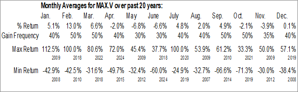 Max Resource Corp. (TSXV:MAX.V) Seasonal Chart