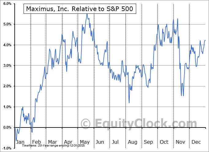 Analysis of the Maximus, Inc. (NYSE:MMS) seasonal charts above shows that a Buy Date of February 5 and a Sell Date of May 9 has resulted in a geometric average return of 3.37% above the benchmark rate of the S&P 500 Total Return Index over the past 20 years. This seasonal timeframe has shown positive results compared to the benchmark in 16 of those periods. This is a very good rate of success and the return slightly outperforms the relative buy-and-hold performance of the stock over the past 20 years by an average of 0.93% per year.
