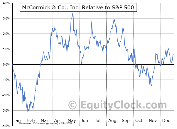 Analysis of the McCormick & Co., Inc. (NYSE:MKC) seasonal charts above shows that a Buy Date of February 17 and a Sell Date of May 12 has resulted in a geometric average return of 4.45% above the benchmark rate of the S&P 500 Total Return Index over the past 20 years. This seasonal timeframe has shown positive results compared to the benchmark in 17 of those periods. This is a very good rate of success and the return strongly outperforms the relative buy-and-hold performance of the stock over the past 20 years by an average of 5.27% per year.