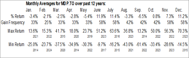 To download MDP.TO seasonal chart data, please log in or Subscribe.
