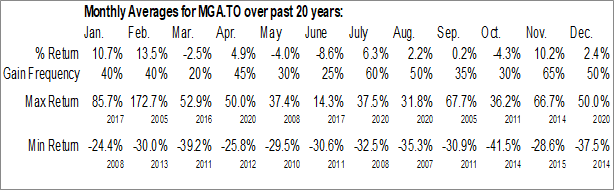 To download MGA.TO seasonal chart data, please log in or Subscribe.