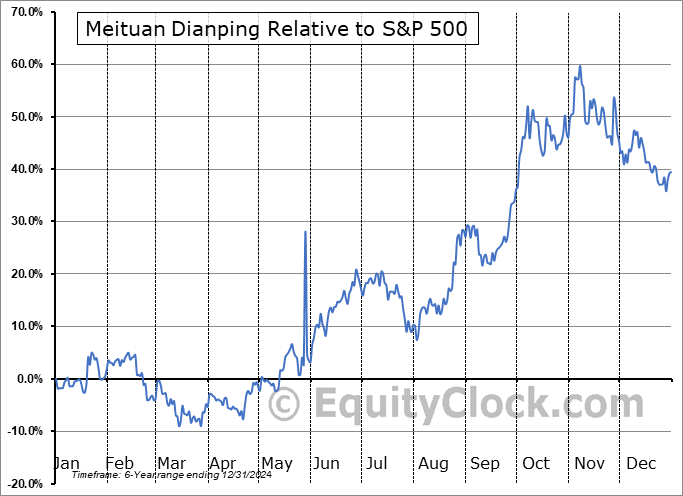 Analysis of the Meituan Dianping (OTCMKT:MPNGF) seasonal charts above shows that a Buy Date of March 27 and a Sell Date of June 29 has resulted in a geometric average return of 23.59% above the benchmark rate of the S&P 500 Total Return Index over the past 6 years. This seasonal timeframe has shown positive results compared to the benchmark in 5 of those periods. This is a very good rate of success and the return strongly outperforms the relative buy-and-hold performance of the stock over the past 6 years by an average of 17.93% per year.