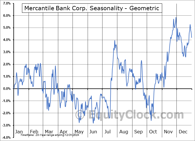 Mercantile Bank Corp. (NASD:MBWM) Seasonal Chart