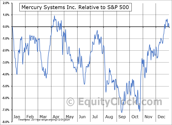 Analysis of the Mercury Systems Inc. (NASD:MRCY) seasonal charts above shows that a Buy Date of October 2 and a Sell Date of January 1 has resulted in a geometric average return of 3.89% above the benchmark rate of the S&P 500 Total Return Index over the past 20 years. This seasonal timeframe has shown positive results compared to the benchmark in 14 of those periods. This is a good rate of success and the return strongly outperforms the relative buy-and-hold performance of the stock over the past 20 years by an average of 11.36% per year.