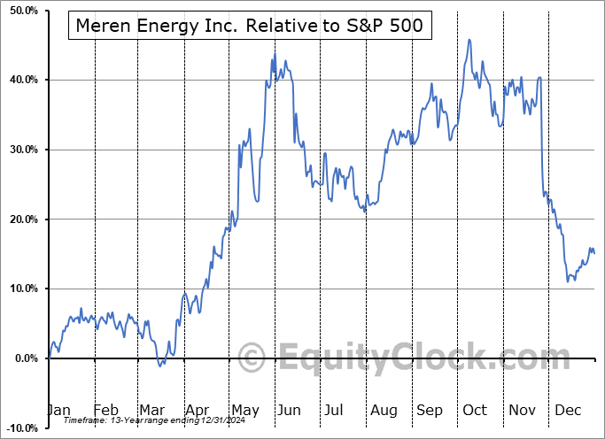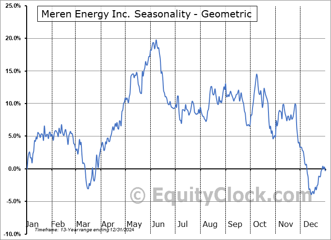 Analysis of the Meren Energy Inc. (OTCMKT:MRNFF) seasonal charts above shows that a Buy Date of March 18 and a Sell Date of June 8 has resulted in a geometric average return of 16.61% above the benchmark rate of the S&P 500 Total Return Index over the past 13 years. This seasonal timeframe has shown positive results compared to the benchmark in 10 of those periods. This is a good rate of success and the return strongly outperforms the relative buy-and-hold performance of the stock over the past 13 years by an average of 29.94% per year.