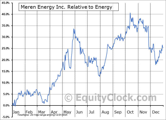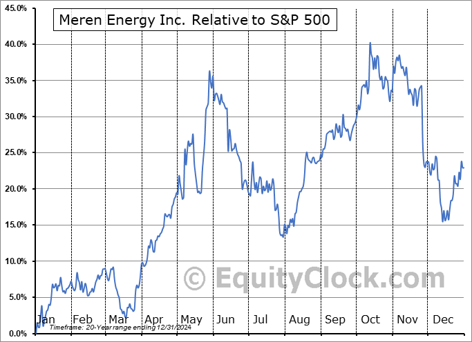 Analysis of the Meren Energy Inc. (TSE:MER.TO) seasonal charts above shows that a Buy Date of December 16 and a Sell Date of March 7 has resulted in a geometric average return of 9.05% above the benchmark rate of the S&P 500 Total Return Index over the past 20 years. This seasonal timeframe has shown positive results compared to the benchmark in 13 of those periods. This is a good rate of success and the return strongly outperforms the relative buy-and-hold performance of the stock over the past 20 years by an average of 14.62% per year.