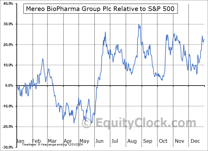 Analysis of the Mereo BioPharma Group Plc (NASD:MREO) seasonal charts above shows that a Buy Date of January 23 and a Sell Date of June 20 has resulted in a geometric average return of 30.97% above the benchmark rate of the S&P 500 Total Return Index over the past 5 years. This seasonal timeframe has shown positive results compared to the benchmark in 5 of those periods. This is an excellent rate of success and the return strongly outperforms the relative buy-and-hold performance of the stock over the past 5 years by an average of 39.64% per year.