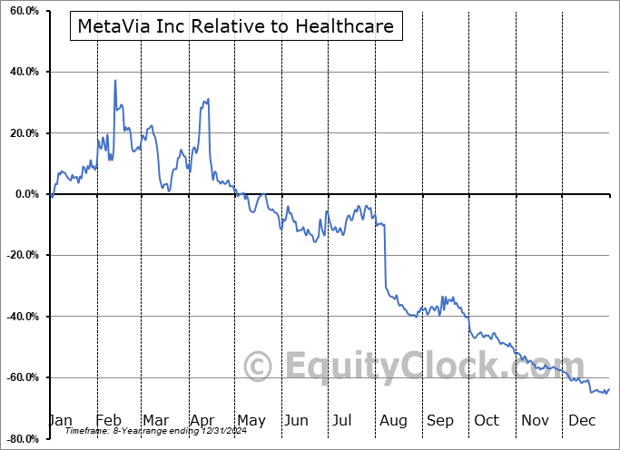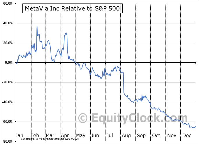 Analysis of the MetaVia Inc (NASD:MTVA) seasonal charts above shows that a Buy Date of December 29 and a Sell Date of March 28 has resulted in a geometric average return of 9.7% above the benchmark rate of the S&P 500 Total Return Index over the past 8 years. This seasonal timeframe has shown positive results compared to the benchmark in 5 of those periods. This is a fair rate of success and the return strongly outperforms the relative buy-and-hold performance of the stock over the past 8 years by an average of 109.7% per year.