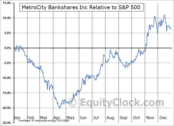 Analysis of the MetroCity Bankshares Inc (NASD:MCBS) seasonal charts above shows that a Buy Date of April 16 and a Sell Date of August 13 has resulted in a geometric average return of 20.9% above the benchmark rate of the S&P 500 Total Return Index over the past 5 years. This seasonal timeframe has shown positive results compared to the benchmark in 5 of those periods. This is an excellent rate of success and the return strongly outperforms the relative buy-and-hold performance of the stock over the past 5 years by an average of 19.59% per year.