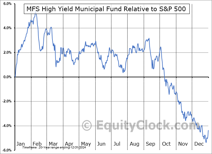 Analysis of the MFS High Yield Municipal Fund (NYSE:CMU) seasonal charts above shows that a Buy Date of November 15 and a Sell Date of February 3 has resulted in a geometric average return of 2.81% above the benchmark rate of the S&P 500 Total Return Index over the past 20 years. This seasonal timeframe has shown positive results compared to the benchmark in 15 of those periods. This is a good rate of success and the return strongly outperforms the relative buy-and-hold performance of the stock over the past 20 years by an average of 9.32% per year.
