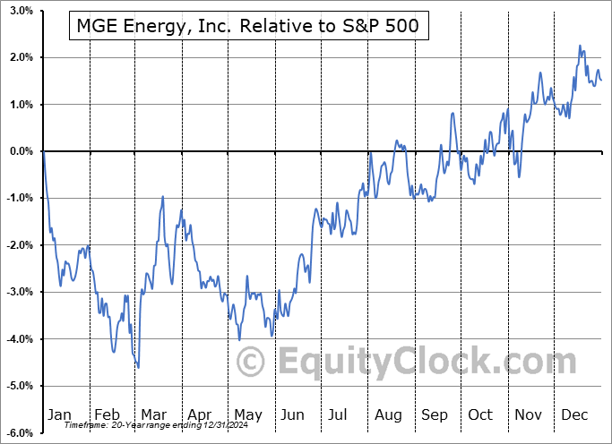 Analysis of the MGE Energy, Inc. (NASD:MGEE) seasonal charts above shows that a Buy Date of May 30 and a Sell Date of August 19 has resulted in a geometric average return of 3.51% above the benchmark rate of the S&P 500 Total Return Index over the past 20 years. This seasonal timeframe has shown positive results compared to the benchmark in 17 of those periods. This is a very good rate of success and the return strongly outperforms the relative buy-and-hold performance of the stock over the past 20 years by an average of 3.45% per year.