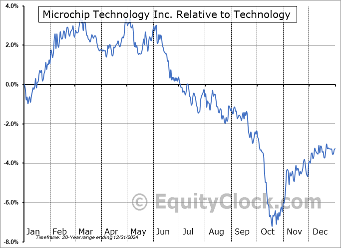 Analysis of the Microchip Technology Inc. (NASD:MCHP) seasonal charts above shows that a Buy Date of November 1 and a Sell Date of March 25 has resulted in a geometric average return of 5.8% above the benchmark rate of the S&P 500 Total Return Index over the past 20 years. This seasonal timeframe has shown positive results compared to the benchmark in 17 of those periods. This is a very good rate of success and the return strongly outperforms the relative buy-and-hold performance of the stock over the past 20 years by an average of 5.12% per year.