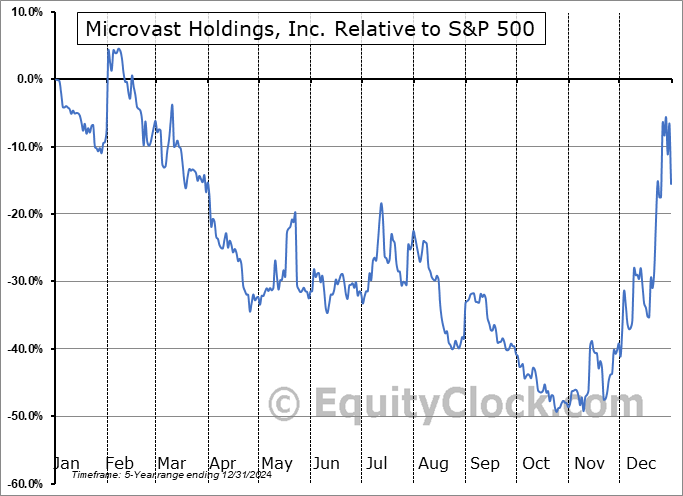 Analysis of the Microvast Holdings, Inc. (NASD:MVST) seasonal charts above shows that a Buy Date of July 27 and a Sell Date of November 14 has resulted in a geometric average return of 1.42% above the benchmark rate of the S&P 500 Total Return Index over the past 5 years. This seasonal timeframe has shown positive results compared to the benchmark in 3 of those periods. This is a fair rate of success and the return strongly outperforms the relative buy-and-hold performance of the stock over the past 5 years by an average of 37.61% per year.