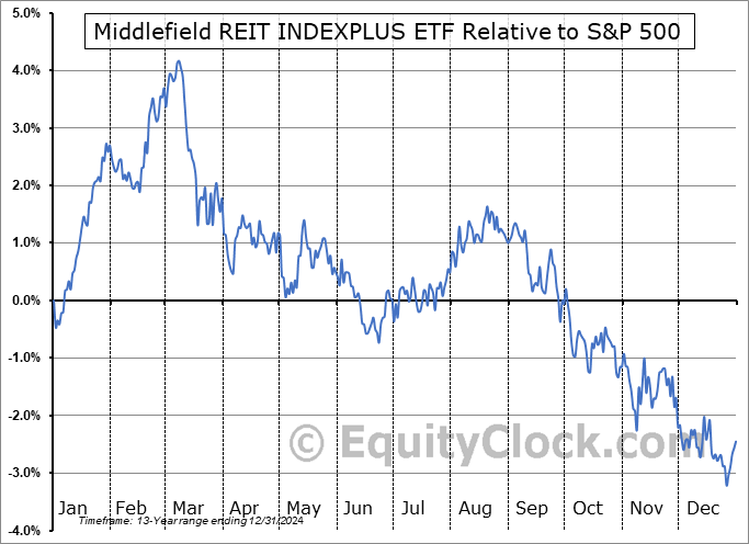 Analysis of the Middlefield REIT INDEXPLUS ETF (TSE:IDR.TO) seasonal charts above shows that a Buy Date of December 3 and a Sell Date of February 27 has resulted in a geometric average return of 2.47% above the benchmark rate of the S&P 500 Total Return Index over the past 13 years. This seasonal timeframe has shown positive results compared to the benchmark in 10 of those periods. This is a good rate of success and the return strongly outperforms the relative buy-and-hold performance of the stock over the past 13 years by an average of 9.83% per year.