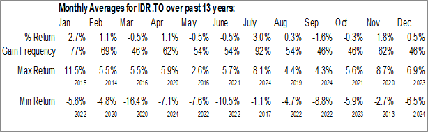 To download IDR.TO seasonal chart data, please log in or Subscribe.