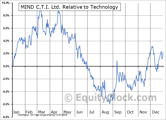 Analysis of the MIND C.T.I. Ltd. (NASD:MNDO) seasonal charts above shows that a Buy Date of December 12 and a Sell Date of March 10 has resulted in a geometric average return of 9.18% above the benchmark rate of the S&P 500 Total Return Index over the past 20 years. This seasonal timeframe has shown positive results compared to the benchmark in 17 of those periods. This is a very good rate of success and the return strongly outperforms the relative buy-and-hold performance of the stock over the past 20 years by an average of 10.89% per year.