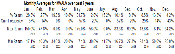 To download MVAI.V seasonal chart data, please log in or Subscribe.