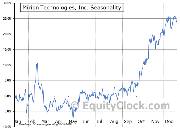 The seasonal timeframe correlates Poorly with the period of seasonal strength for the Technology sector, which runs from October 9 to February 15. The seasonal chart for the broad sector is available via the following link: Technology Sector Seasonal Chart.