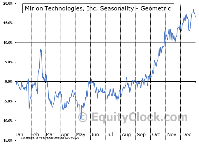 Analysis of the Mirion Technologies, Inc. (NYSE:MIR) seasonal charts above shows that a Buy Date of July 24 and a Sell Date of December 14 has resulted in a geometric average return of 17.94% above the benchmark rate of the S&P 500 Total Return Index over the past 4 years. This seasonal timeframe has shown positive results compared to the benchmark in 4 of those periods. This is an excellent rate of success and the return strongly outperforms the relative buy-and-hold performance of the stock over the past 4 years by an average of 18.84% per year.