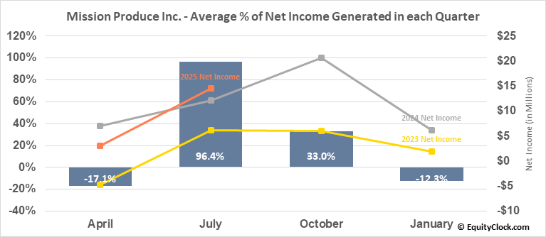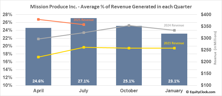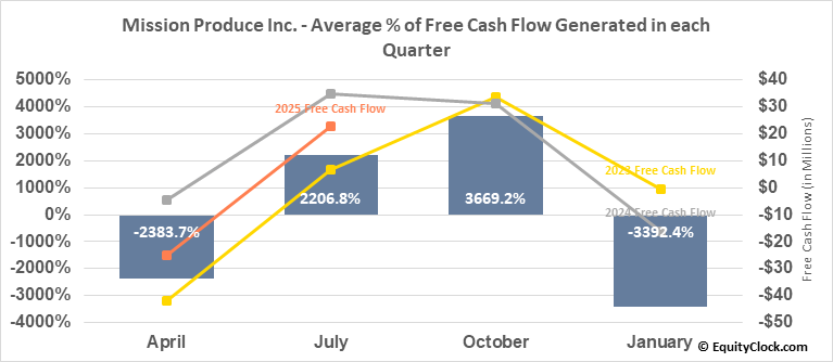 Mission Produce Inc. (NASD:AVO) Seasonal Chart